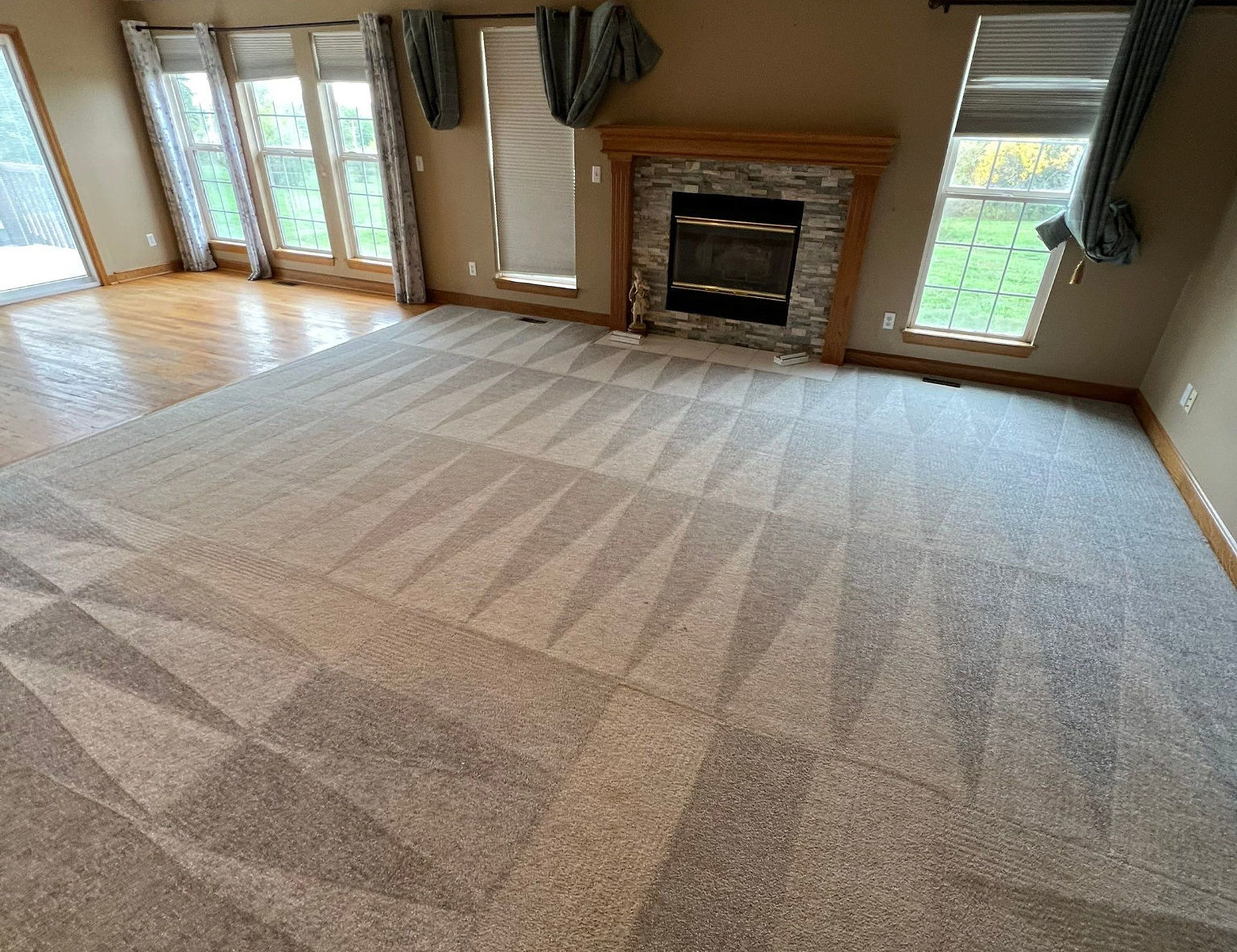 Under normal conditions, carpets cleaned with our fast-dry equipment will be walk-dry in 2–4 hours and fully dry within 8–12 hours. Proper airflow and dehumidification further speed up the process.